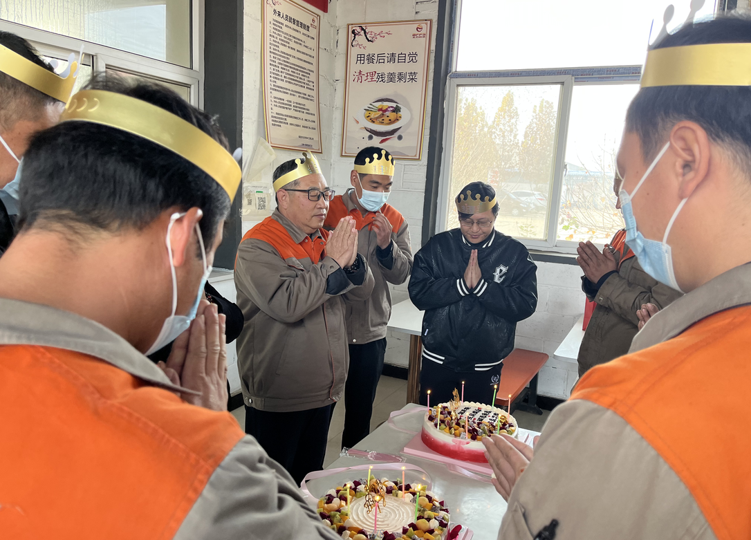 公司食堂準備了豐盛可口的飯菜,公司準備了生日蛋糕,董事長發表講話,并為過生日的同志送上生日祝福,公司員工聚在一起唱生日歌,分享生日蛋糕。大家都覺得十分幸福,因為我們是相親相愛一家人。
